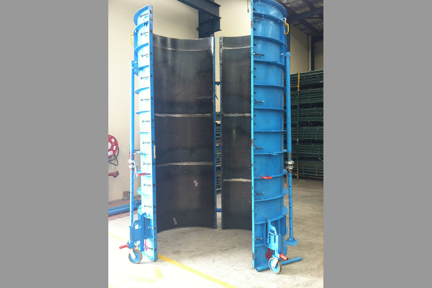 Fowler design and fabricate bespoke column forms made to customer requirements, of all shapes and sizes, may it a simple square, round or complex banana shaped columns. These forms can include pouring platorms, access ladders or stairs and castor wheels. Forms provide a superior concrete finish.