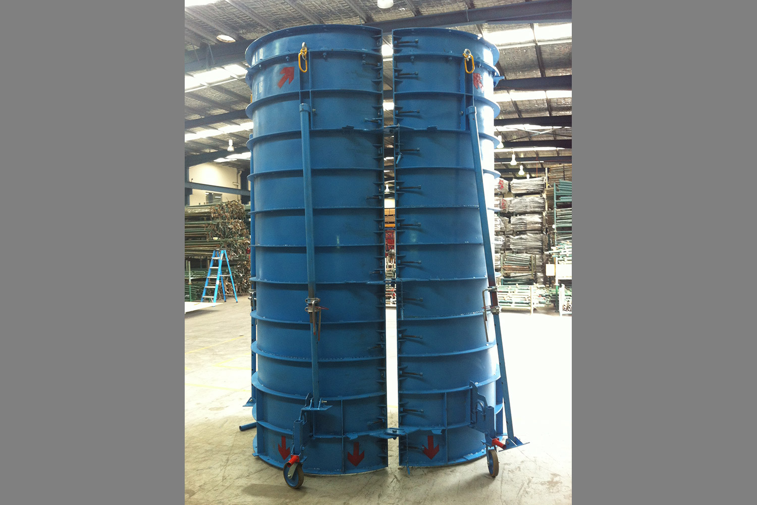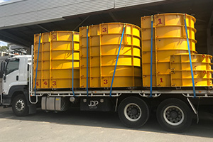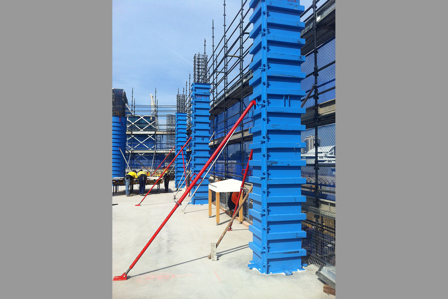 Fowler design and fabricate bespoke column forms made to customer requirements, of all shapes and sizes, may it a simple square, round or complex banana shaped columns. These forms can include pouring platorms, access ladders or stairs and castor wheels. Forms provide a superior concrete finish.