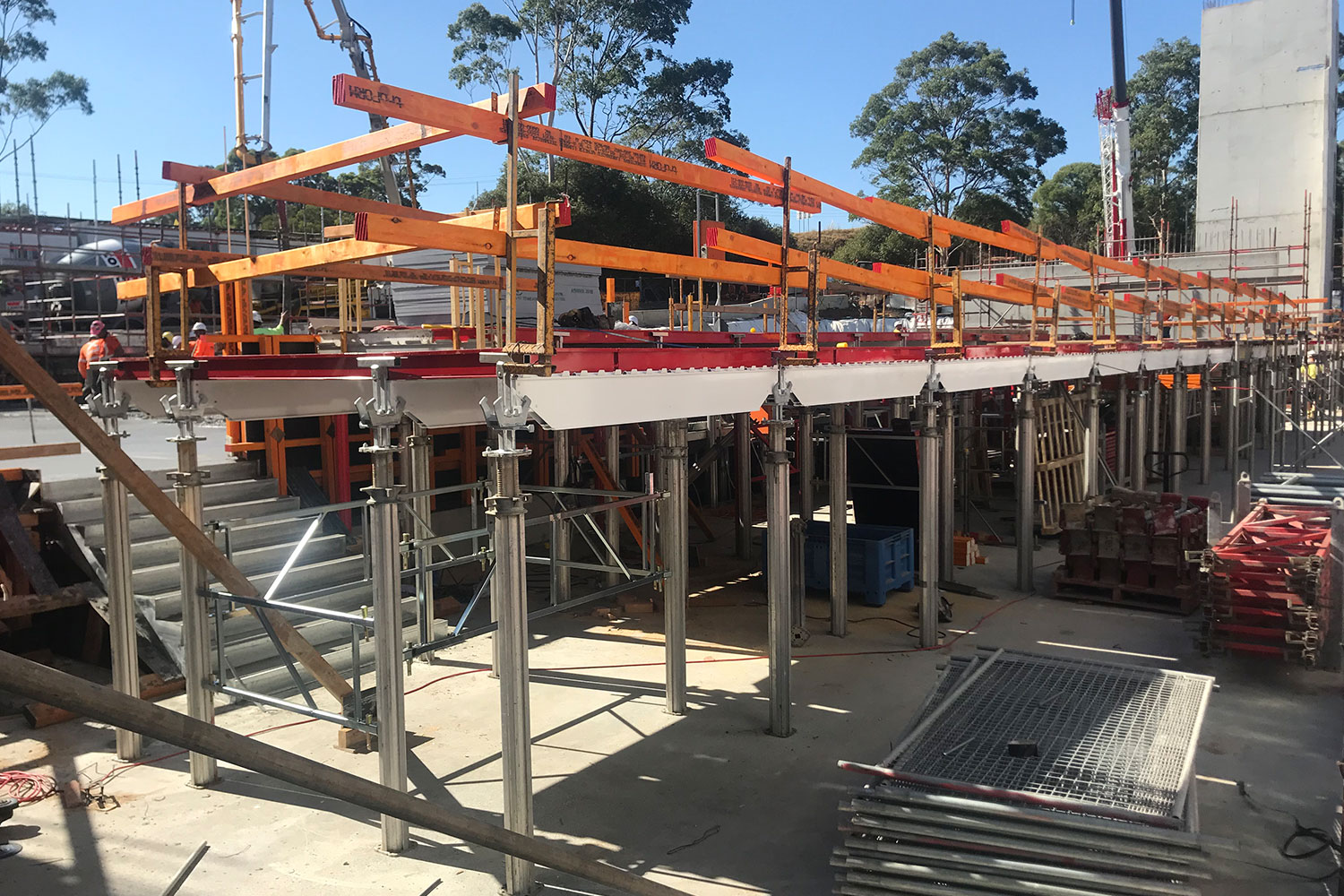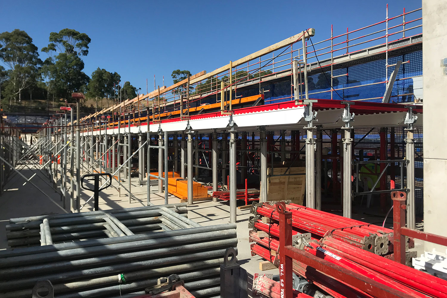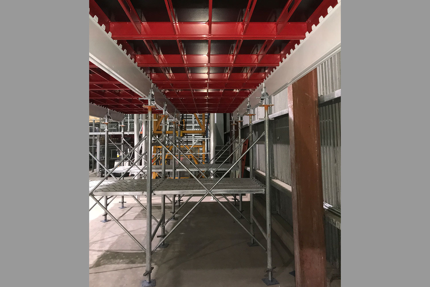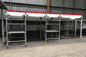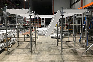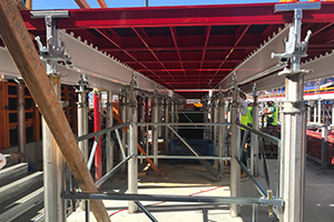 Unideck has been designed to work with other systems available in the market including standard shoring frames, enabling the system to be used safely for high strutting slabs with working decks / catch decks fitted to the frames.