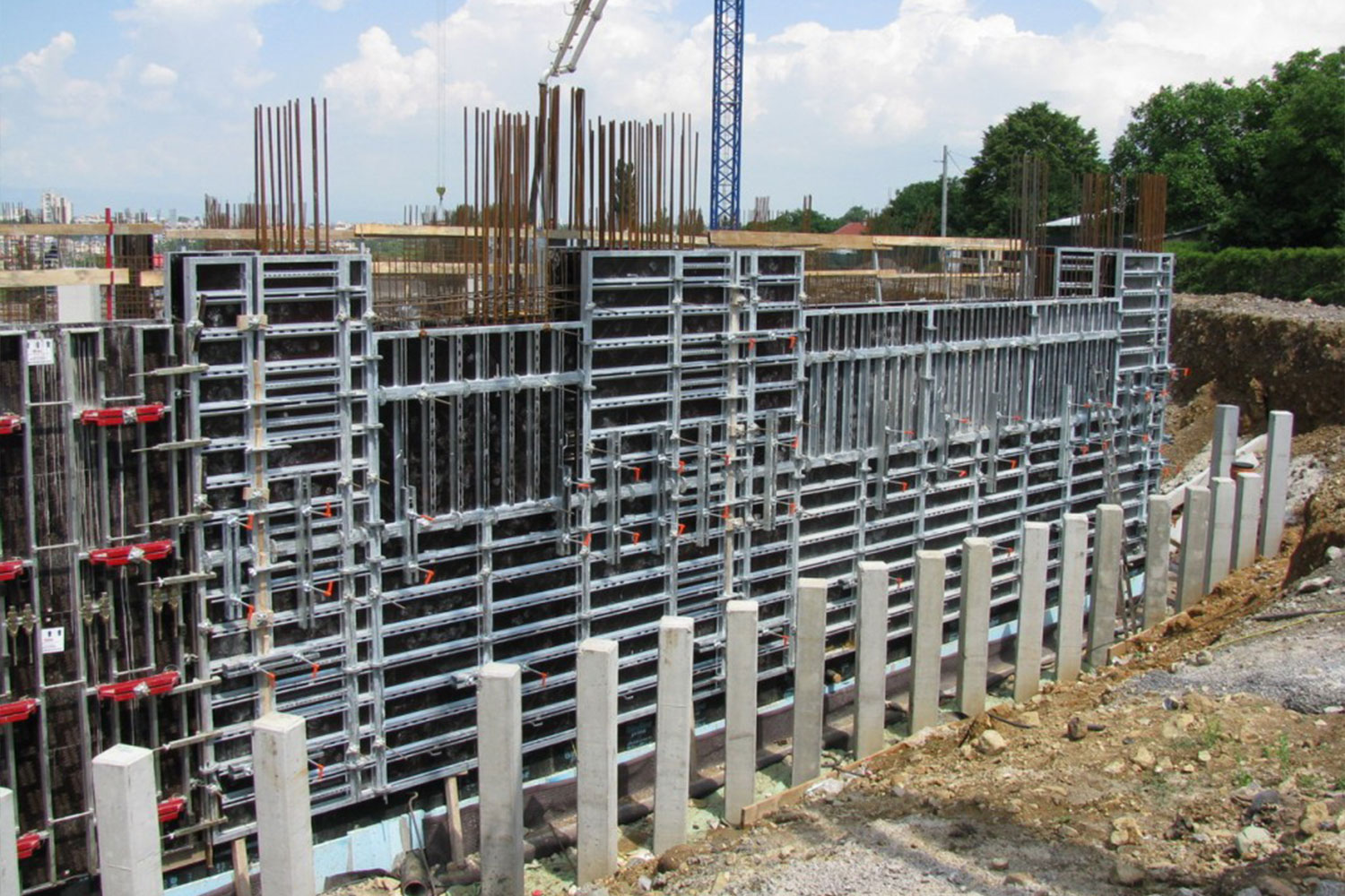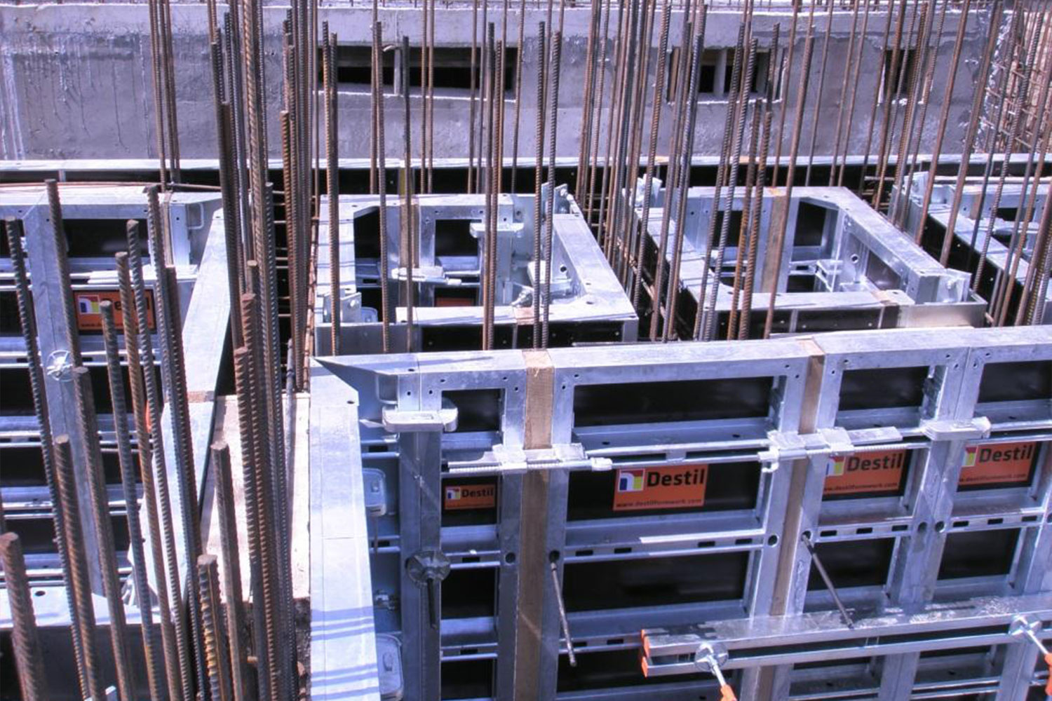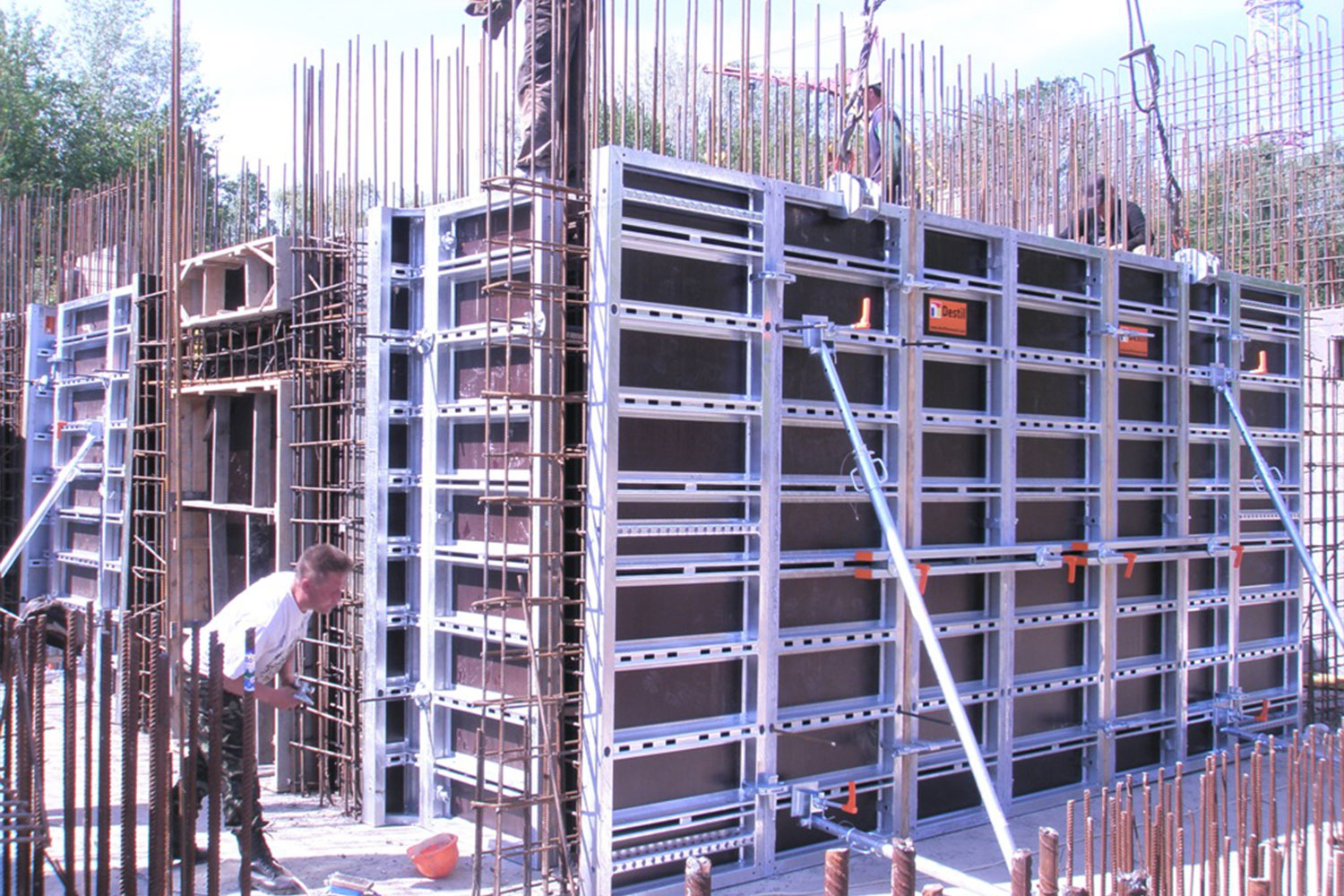 Destil is a large framed wall formwork system, capable of withstanding 80kN/m2 concrete pressure, using only 2 tie bars vertically within a 3.0m high panel. With reduced tie bars and easy fit accessories, the system is efficient and easy to assemble.